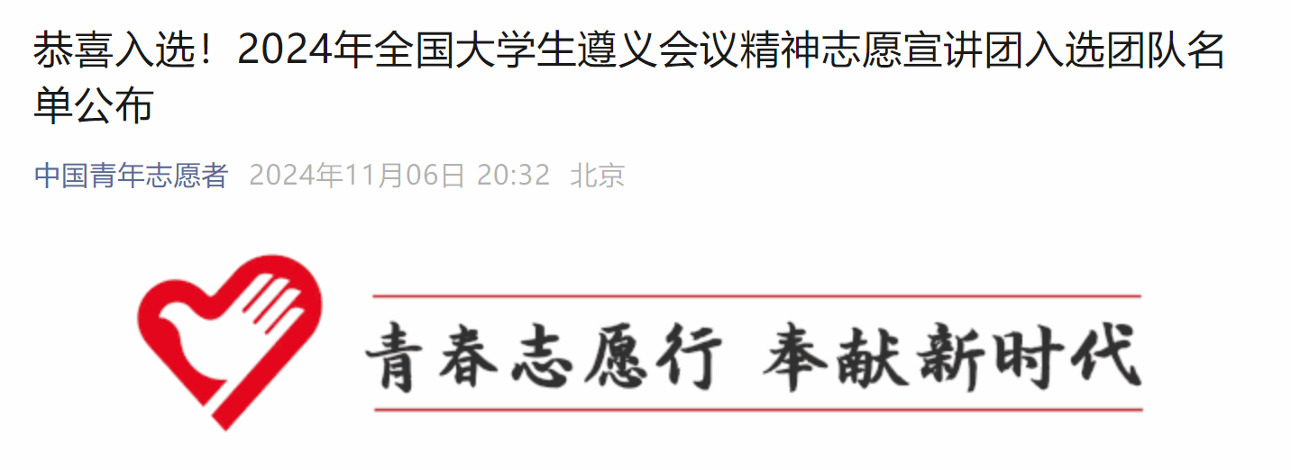 为深入学习宣传贯彻习近平新时代中国特色社会主义思想和党的二十届三中全会精神,深入贯彻落实习近平总书记提出的“传承红色基因、讲好遵义故事”的重要要求,落实“强国复兴有我”群众性主题宣传教育活动相关要求,引导青年员工弘扬遵义会议精神,赓续红色血脉,团中央青年志愿者行动指导中心联合有关单位,面向全国高校遴选相关老员工志愿宣讲团队,15vip太阳集团彩虹“1+N”书信志愿宣讲团成功入选。